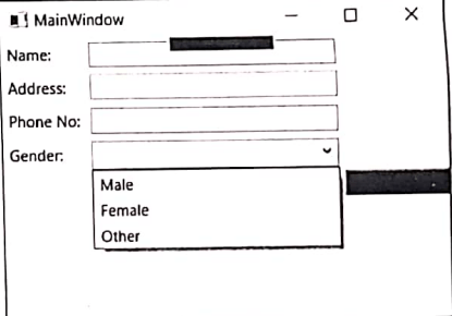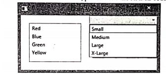 -a) The following WPF based GUI contain a Grid-layout control in which a ListBox and ComboBox are placed in different Column and same Row, please write the XAML code for it.