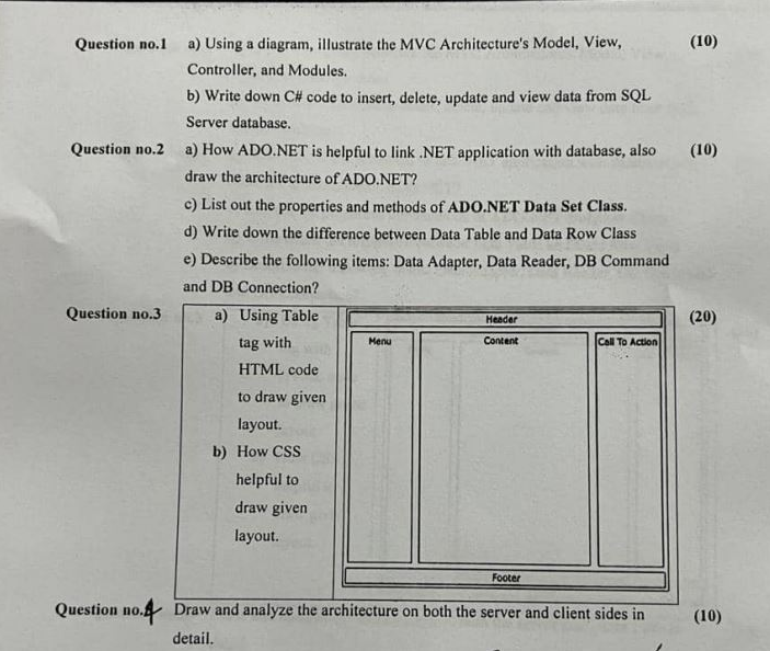 Q4: Write a class to interact with SQL SERVER database. Class should have two functions: 1) Modification (to insert, delete and update data) and 2) Display Information (to get data).