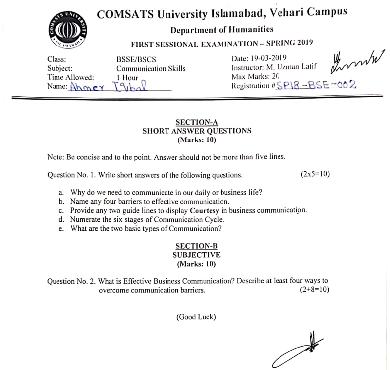 Communication skills Mid term Examination