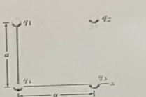 In Fig. the four particles form a square of edge length a = 5.00 cm and have charges q1 = +10.0nC, q2 = -20.0nC, q3 = +20.0nC and q4 = -10.0nC. In unit-vector notation. What net electric field do the particles produce at the square’s center?