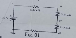 Determine the voltage at each point with respect to ground in figure 01 and each resistor have 20 volts across it.