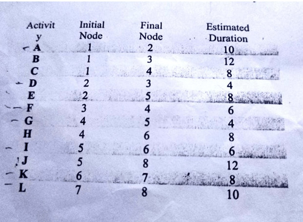 Q2: Consider table below. All duration estimates are in days, and the network proceed from node 1 to node 8.